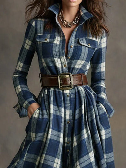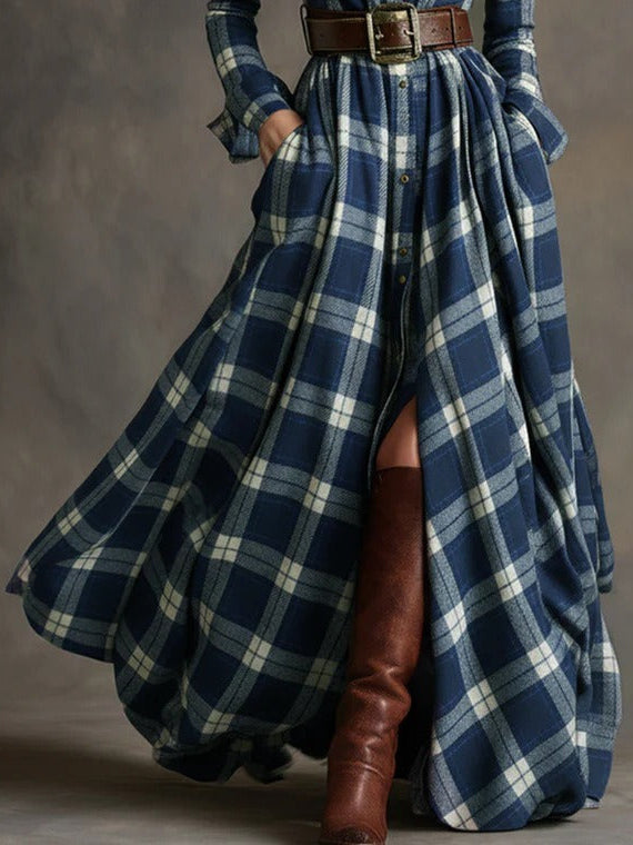 Fiona ❘ Lange geruite jurk met riem